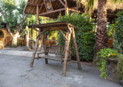 Con la stagione calda potrete trovare refrigerio sotto il nostro bellissimo gazebo con tetto in paglia, poggiato su colonne di cocco e pavimento di pietra indiana. Il tutto è circondato da un giardino ben curato dove l’acqua di una fontana, scendendo per vari dislivelli, crea un ruscello, habitat ideale per pesci e piante acquatiche.